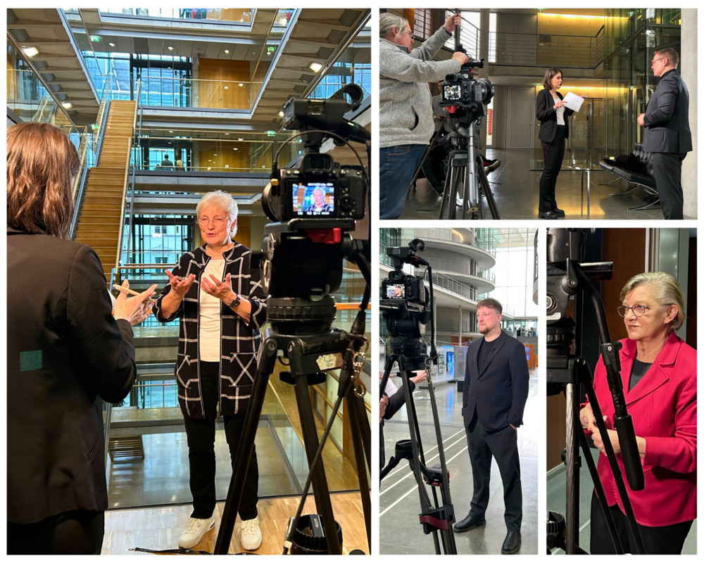 Karina Mössbauer (The Pioneer) auf Stimmenfang im Berliner Regierungsviertel, u.a. mit Kordula Schulz-Asche (Die Grünen), Heike Baehrens (SPD), Jens Teutrine (FDP) und Tino Sorge (CDU)Wo stehen die Gesetze zur Pflegekompetenz und Pflegeassistenz?