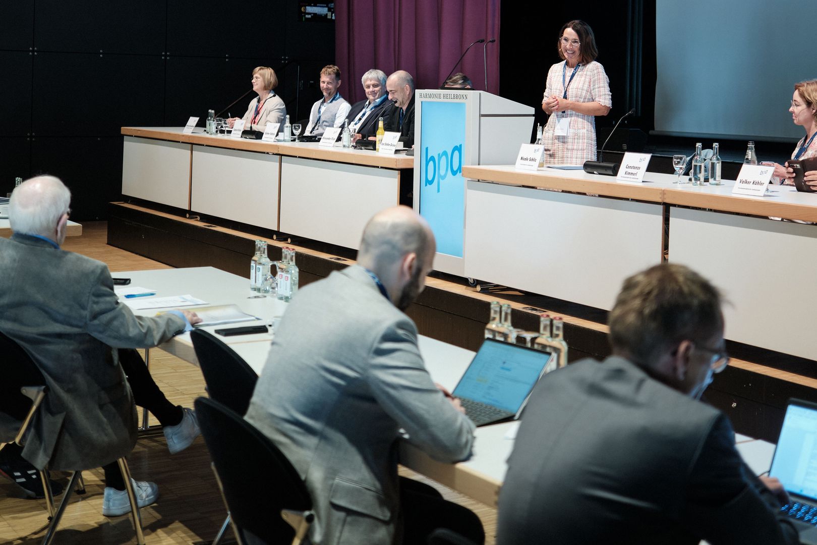 Mit einem herzlichen Willkommen eröffnete die alte und neue Landesvorsitzende Nicole Schliz die Mitgliederversammlung des bpa Baden-Württemberg. Über 100 Teilnehmerinnen und Teilnehmer waren am 10. Juli 2025 in Heilbronn zusammengekommen, um Bilanz zu ziehen und nach vorne zu blicken. Eine kleine Kennenlern-Aktion zum Start sorgte für persönliche Begegnungen und lockere Gespräche. Schliz betonte die Bedeutung des Austauschs unter den Mitgliedern: „Schön, dass Sie heute hier sind. Im bpa zählt der Beitrag jedes Einzelnen. Wir sind ein Mitmachverband – gemeinsam gestalten wir die Zukunft der Pflege“ und lud dazu ein, die Stände der Aussteller und Kooperationspartner zu besuchen. Ein lokaler Regionalsender begleitete die Veranstaltung mit einem Kamerateam.