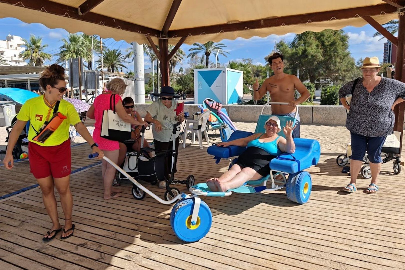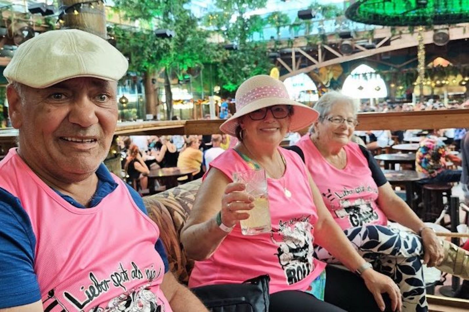 Viele aus der Gruppe seien über die Schicksale und das Ziel hinter der Tour mit Passanten und Einheimischen ins Gespräch gekommen. Das war zu erwarten. Denn wie könnte sie auch nicht auffallen, die Monnem-Truppe: Pinke Tanktops mit dem Aufdruck „Rollator-Gang: Besser spät als nie“ hatte Neuert drucken lassen. Langscheid weiß auch: „Während sich einige bei Bier, Sangria und Ballermann-Hits ins Getümmel geworfen haben, haben andere wegen ihrer seelischen oder physischen Erkrankungsbilder auch einmal Ruhe gebraucht.“ Für alle war etwas dabei. „Die Leute hier sind der Hammer. So hilfsbereit. Ich mag an Spanien, dass hier keiner schräg guckt, nicht ‚Hä, was soll denn das?‘ fragt, wenn wir als Rolligang auffahren“, sagt Panajotis Neuert. „Und, dass alle immer helfen. Egal, ob du ins Taxi gehen willst oder am Hotel stehst. Sie fragen ständig, ob wir noch was brauchen und zeigen echtes Interesse“, so der Schönauer.
