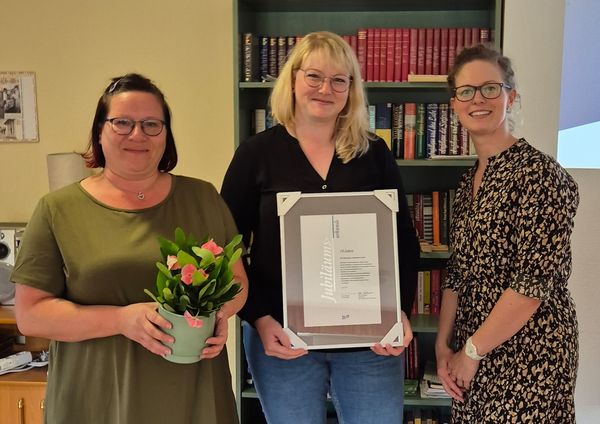 Anna Rudolph und Sandra Heitmann (ZAK Evelin Funke) mit Sarah Kolbe (bpa-Landesreferentin), die die Glückwünsche des bpa überbrachte.