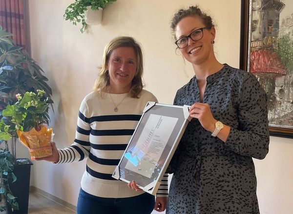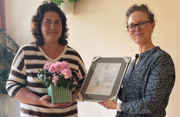 Jaqueline Schlegel (Geschäftsführerin und Pflegedienstleitung, Pflegedienst Schwester Jaqueline & Team) nahm die Glückwünsche von Sarah Kolbe (bpa-Landesreferentin) entgegen