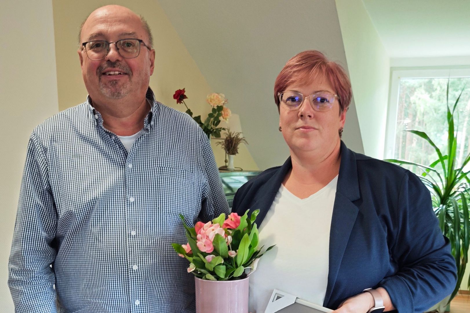 René Langerwisch (Pflegedienstleiter vom Team der Seniorenpflege Randt) und Simone Leske (bpa-Landesvorsitzende in Brandenburg), die die Glückwünsche des bpa übermittelte.